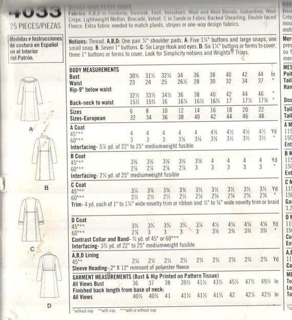 Sewing Pattern Simplicity 4033 Size Us 6 14 Coat Etsy