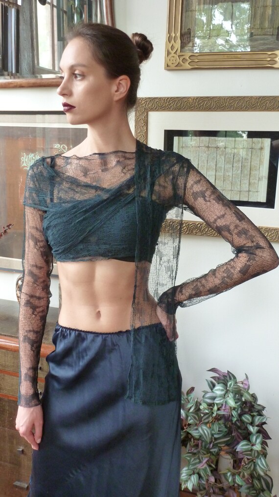 Romeo Gigli Sheer Lace Wrap Top Cropped Bare Midriff Etsy