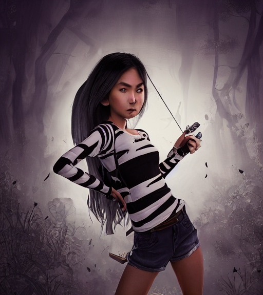 Prompthunt Epic Fantasy Comic Book Style Portrait Painting Of A Young Expressive Malaysian Tomboy Woman Futuristic Tanktop With Black And White Stripes Long Sleeves Bare Midriff By Mark Ryden Pixar Hayao Miyazaki